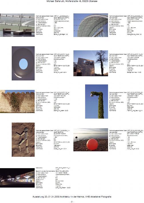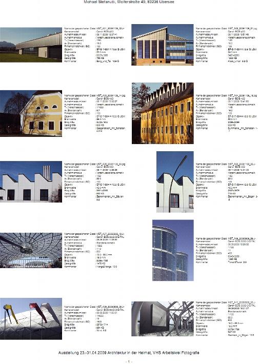 Fotoausstellung des VHS "Arbeitskreis Fotografie" vom 23. bis 31. Mai 2009, im Kulturzentrum Traunstein, zum Thema "Architektur in der Heimat" mit Ergänzungen aus dem Bereich "Gegensätze" .